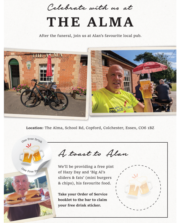 A modern order of service, which brought to life all of the things that he loved and enjoyed doing