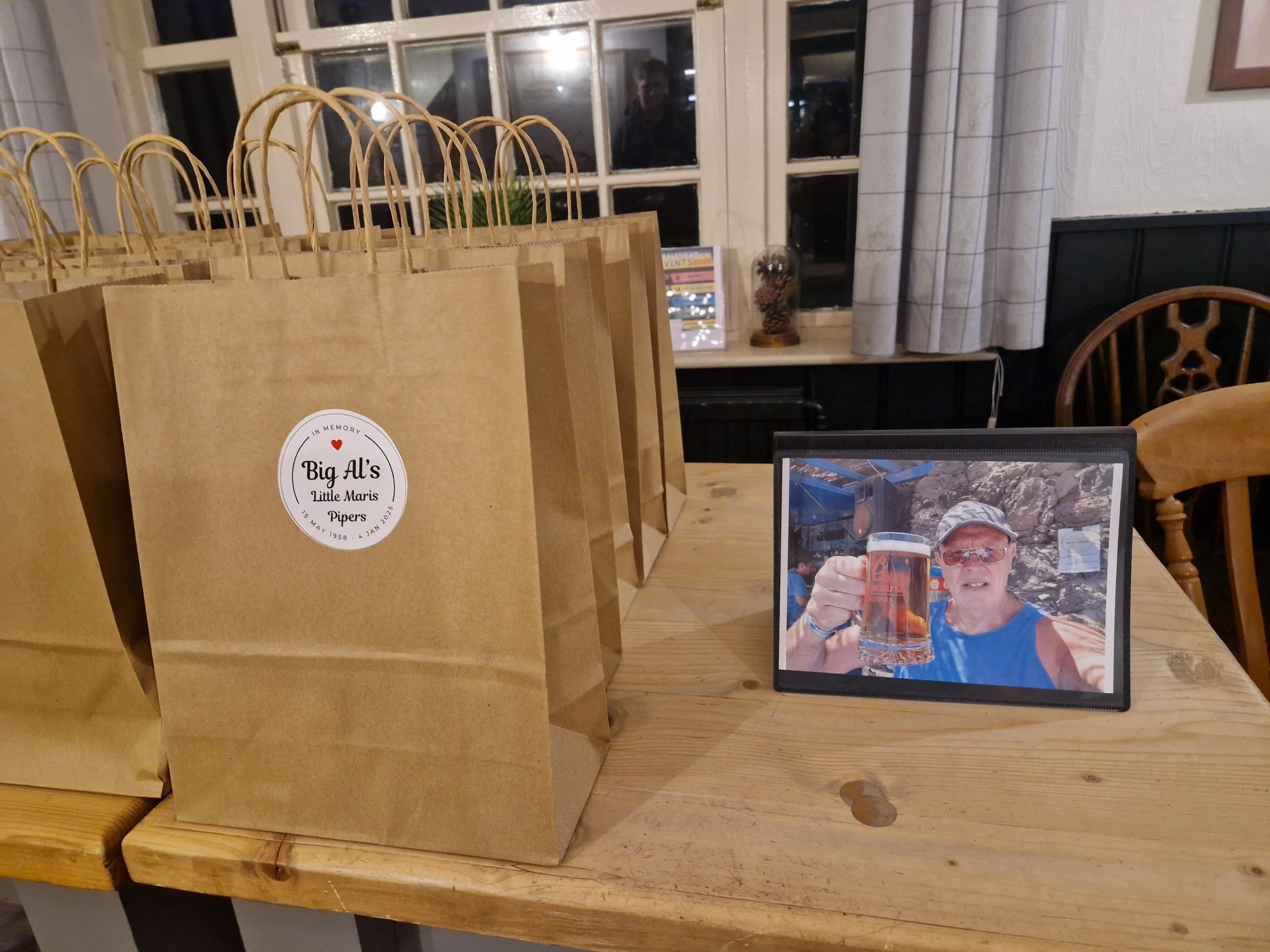 Personal memory gifts for guests - takeaway “Grow Your Own Potato” gift bags, so everyone could grow their own potatoes in his memory (one of his favourite things to do)